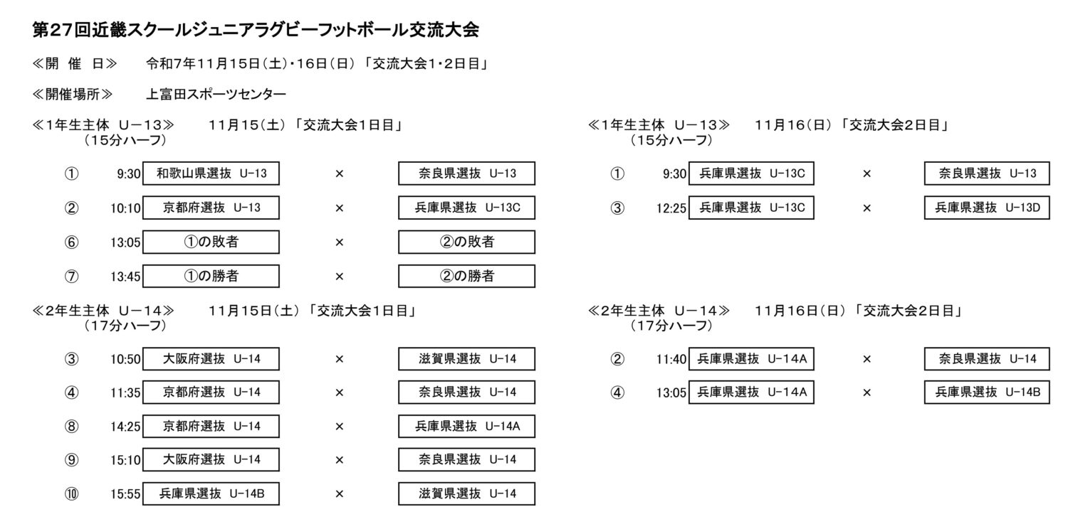> 第27回近畿スクールジュニアラグビーフットボール交流大会(11月15日、16日)